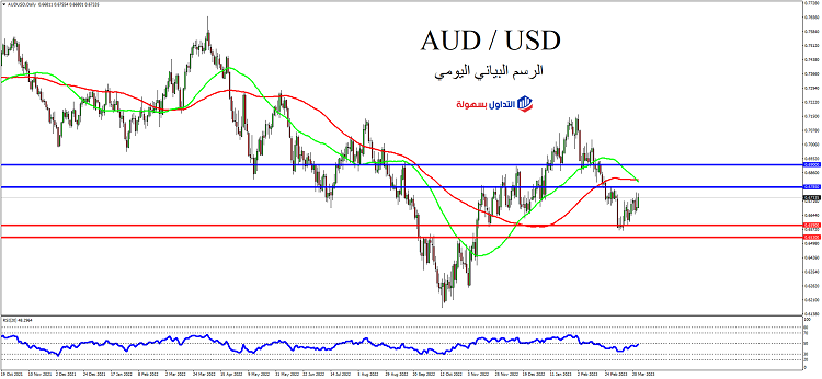 شهدنا تراجع قوي للدولار الأمريكي أمام جميع العملات الرئيسية الأيام القليلة الماضية، وشهدنا إرتفاع الذهب وسط زخم شرائي عالي، إلا أن الدولار الأسترالي لم يكون قادر علي حصد مكاسب واضحة أمام الدولار الأمريكي. واستغرق 12 يوم تداول لتعويض الخسائر التي تحققت في يوم 7 مارس 2023 فقط، وهي إشارة تدل علي ضعف ثيران الأسترالي بشكل كامل.