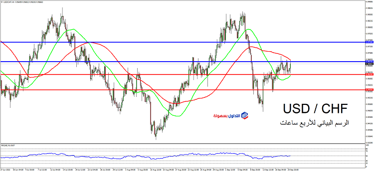 ننصح ببيع زوج (USD/CHF) من الأسعار الحالية (0.9660) ليكون مستوي الدعم 0.9625 أول هدف يليه مستوي 0.9565 الهدف التالي. ويكون أمر وقف الخسارة هو كسر مستوي المقاومة 0.9675 لأعلي. وربما تفعيل أمر وقف خسارة صفقات البيع سيكون فرصة للشراء.