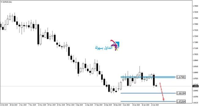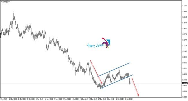اليورو مقابل الدولار النيوزلندي EURNZD نجد أن الزوج بدأ في اتجاه هابط منذ فترة من الزمن ويبدو أن هذا الاتجاه الهابط مستمر حيث وفقا للتحليل الفني فالزوج لازال أمامه هبوط مستقبلا في الفترة القريبة القادمة وقد ظهرت أكثر من إشارة فنية تبين ذلك ولذلك فسوف نسرد في السطور القليلة القادمة الفرصة الفنية المتكونة وكيف نستفيد منها أفضل استفادة وشرح لها بصورة فنية من خلال الأطر الزمنية المختلفة .