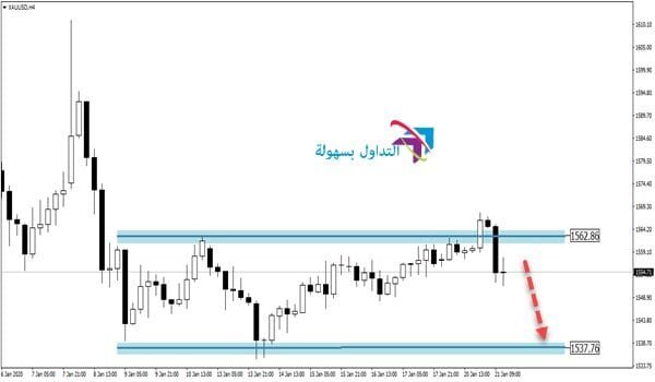 وكما ذكرنا سابقا فيعتبر مستوى 1562 كمستوى مقاومة للأسعار وتمركز لها ويستهدف الزوج مستويات 1537.7 والتي تعتبر المستهدف له وفي حالة كسرت الأسعار مستوى 1562 فيعتبر بذلك التحليل لاغيا ولا يعتد به .