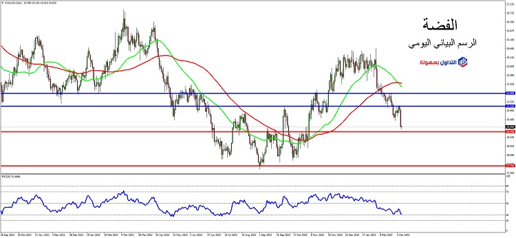 لم تنجح الفضة في إقناع المستثمرين بشرائها؛ فعوائد الدولار -الخالية من الخطر- قوية ومغرية، وهذا ما يبقي الفضة تحت ضغوط بيعية مكثفة ونعتقد أن القوة المتوقعة للدولار علي الأجل القصير ستزيد من خسائر الفضة. لذلك ننصح ببيع الفضة وإستهداف مستويات الدعم الحالية.