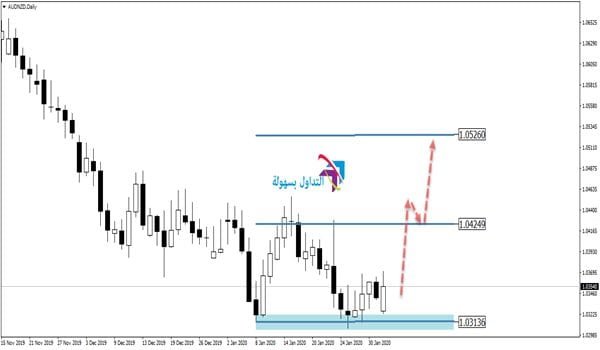 وكما ذكرنا سابقا فيعتبر مستوى 1.0313 كمستوى دعم للأسعار وتمركز لها ويستهدف الزوج مستويات 1.0424 والتي تعتبر المستهدف الأول له ومستويات 1.0526 والتي تعتبر المستهدف الثاني له وفي حالة كسرت الأسعار مستوى 1.0313 فيعتبر بذلك التحليل لاغيا ولا يعتد به .