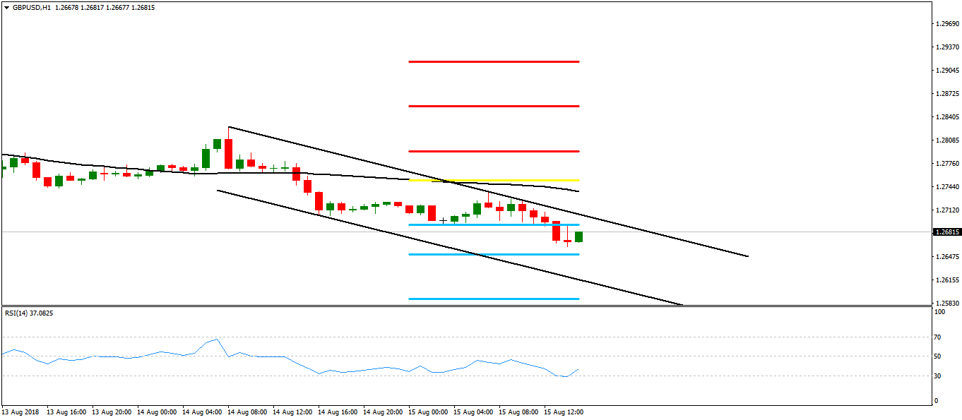 تداولات الزوج علي فريم الساعه داخل قناه سعريه هابطة ومنطقة ارتكاز سعري للزوج والتي تمثل مستوي مقاومة عند سعر 1.2751