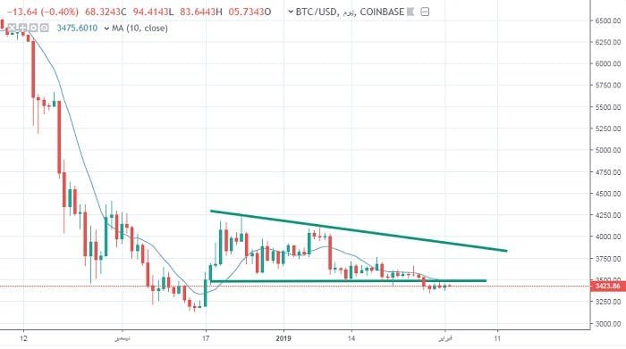 بلغت قيمة البيتكوين أعلى من 4100 دولار في 8 يناير قبل أن تتحرك إلى ما يقارب 3500 دولار ، حيث أصبحت محاصرة في نطاق تداول ضيق.