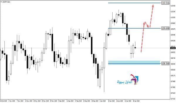 وكما ذكرنا سابقا فيعتبر مستوى 108.56 كمستوى دعم للأسعار وتمركز لها ويستهدف الزوج مستويات 109.69 والتي تعتبر المستهدف الأول له ومستويات 110.51 والتي تعتبر المستهدف الثاني له وفي حالة كسرت الأسعار مستوى 108.56 فيعتبر بذلك التحليل لاغيا ولا يعتد به .