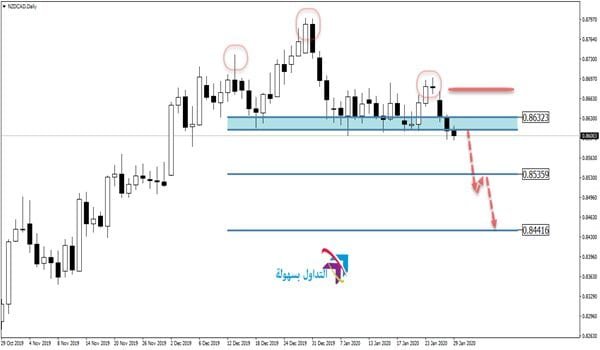 الدولار النيوزلندي مقابل الدولار الكندي NZDCAD فالزوج فالزوج بدأ يتكون عليه إشارات انعكاسية تشير إلى انعكاس الاتجاه والهبوط مستقبلا لفترة من الزمن وهذا ما سنبينه في هذا التحليل .