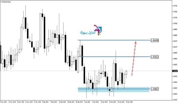 اليورو مقابل الدولار الكندي EURCAD نجد أن الزوج بشكل عام وفي الفترة الأخيرة يتداول في اتجاه عرضي جانبي ولكن توجد فرصة للاستفادة من ذلك وهذا ما سنوضحه في هذا المقال .
