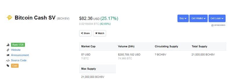يشار إلى العملة الجديدة باسم (Bitcoin Cash SV (BCHSV ، في حين أن العملة الأصلية التي خضعت لترقية الشبكة المخططة تحافظ على الاسم الأصلي لـ (Bitcoin Cash (BCH الذي يدعم تطبيق Bitcoin ABC الحالي.
