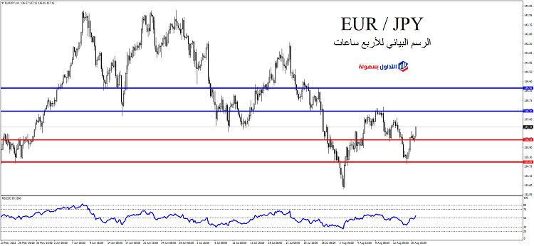 الين لا يزال أسرع العملات سقوطًا أمام الدولار، لذلك ننصح بشراء زوج الدولار ين من الأسعار الحالية (137.17) لتكون مستويات المقاومة الحالية هي الأهداف، ويكون أمر وقف الخسارة هو كسر مستوي 136.35 لأسفل.