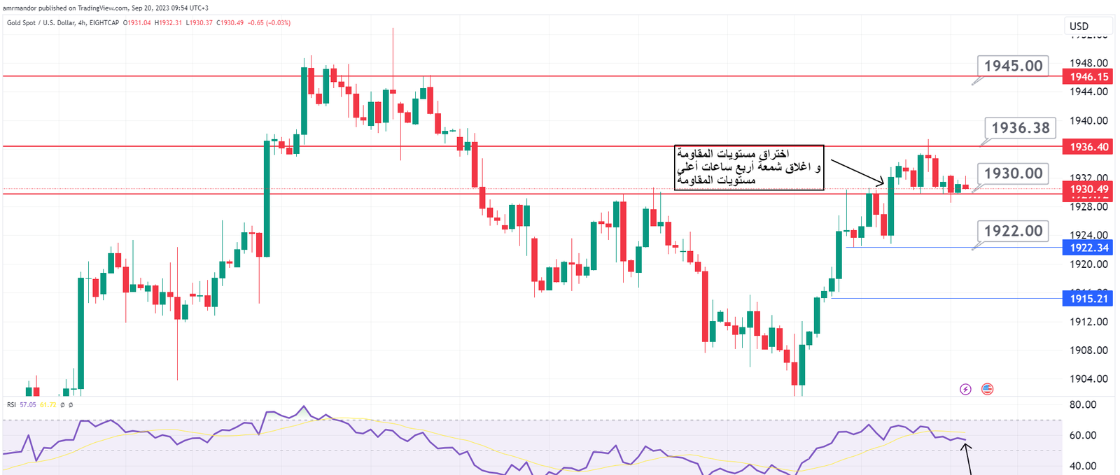 شارت الذهب اطار الأربع ساعات