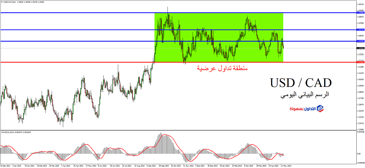 شارت يومي لزوج الدولار الامريكي مقابل الدولار الكندي