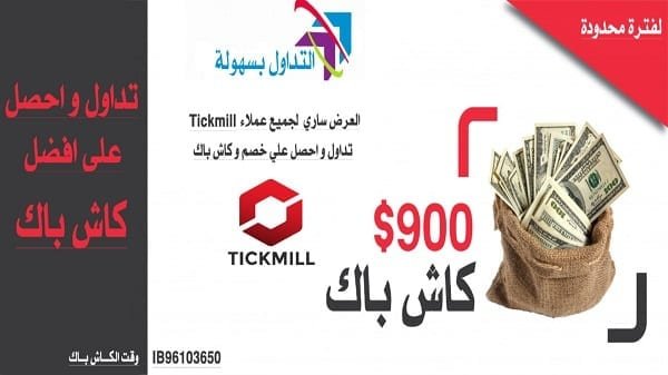 كاش باك 9 دولار على كل لوت تقوم بالتداول به في شركة Tickmill بالإضافة الي خصم 5% من العمولات عند فتح حساب Pro سواء كانت الصفقة رابحة او خاسرة.