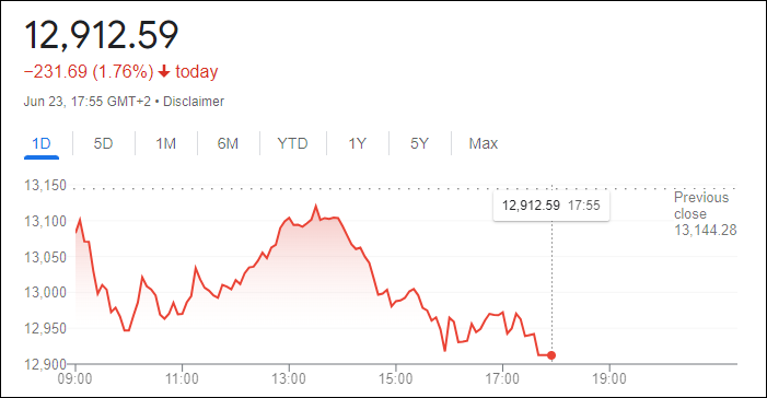 وكان مدى تذبذب المؤشر اليوم 207.72 نقطة، في نهاية التداول بلغ مؤشر داكس 12912.59 نقطة، أي ما يعادل خسارة 1.76 في المائة مقارنة بيوم التداول السابق.