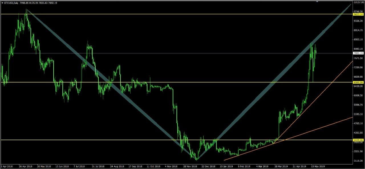 في الأيام القليلة الماضية ، تحرك سعر البيتكوين بشكل كبير بين 7500$ إلى 8000 $ ، مما يدل على التقلب الشديد في الأطر الزمنية القصيرة.