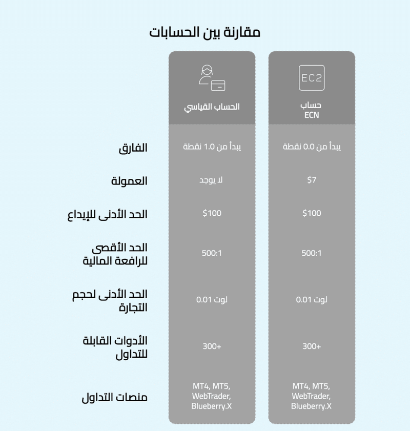 - منصات التداول: MT4, MT5, WebTrader, Blueberry.X.