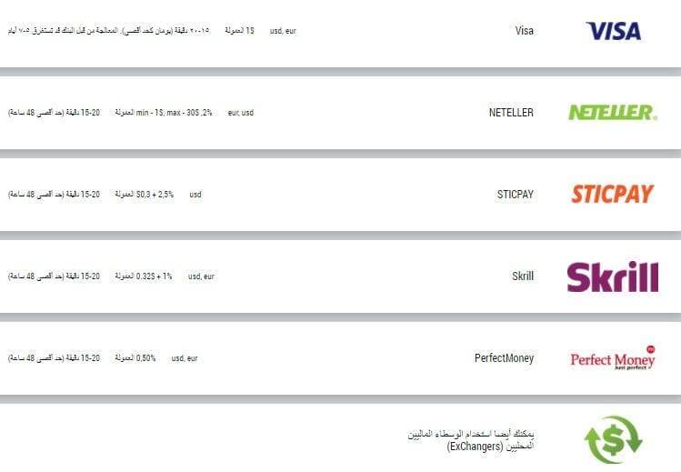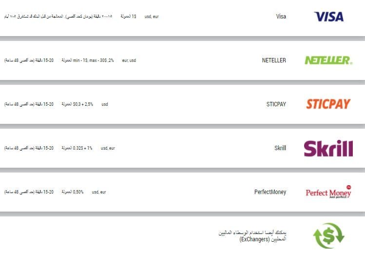 - إيداع وسحب باستخدام أي نظام وبأي عملة